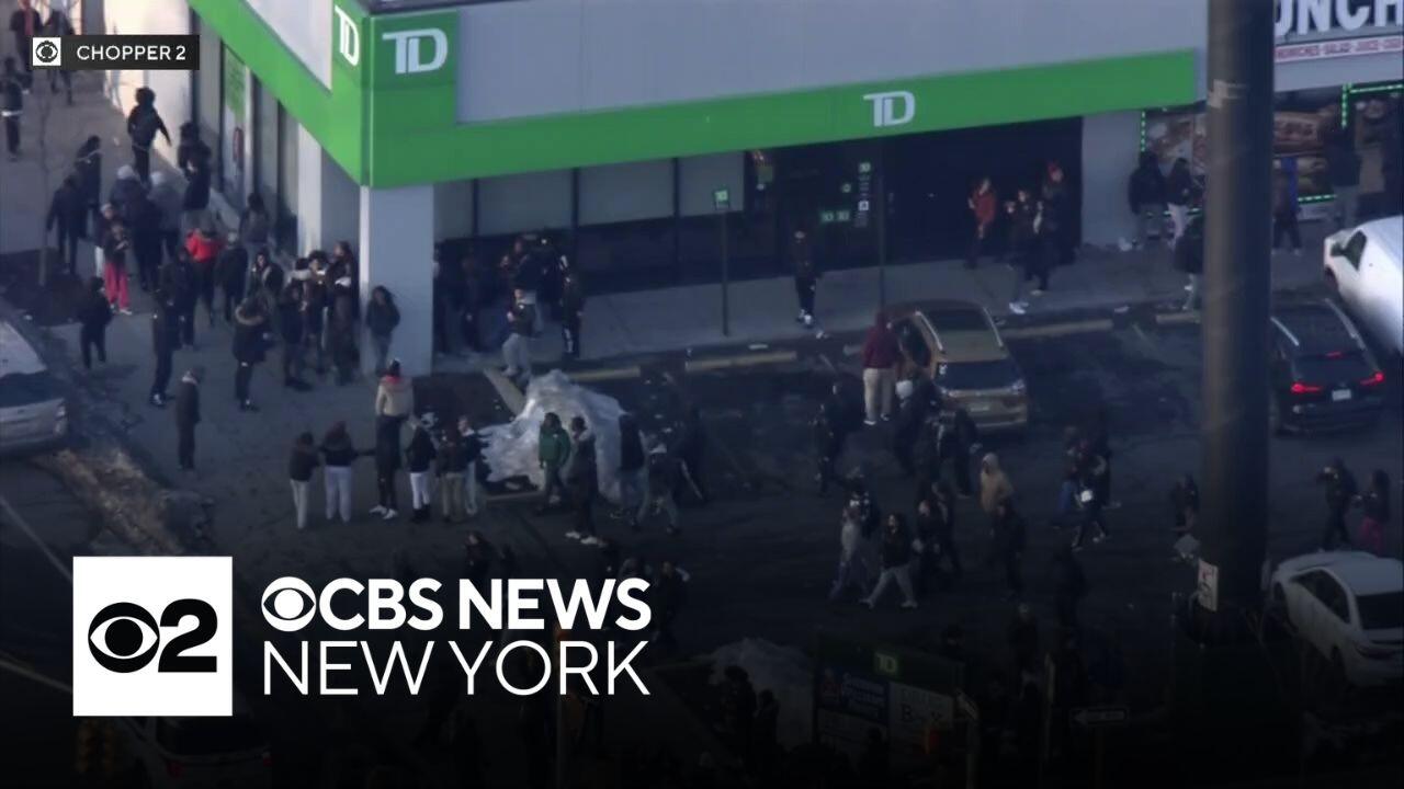 Earlier Monday, Chopper 2 was over the Bay Plaza Mall, where groups of people were seen leaving amid a large police presence. CBS News New York's Kristine Johnson reports.