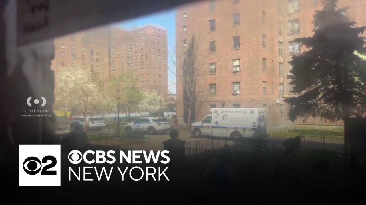 Officers say a 43-year-old man was found shot in the torso inside a building on Cumberland Walk just before 11 a.m. on Sunday. Police are searching for a suspect. CBS News New York's Allen Devlin reports.