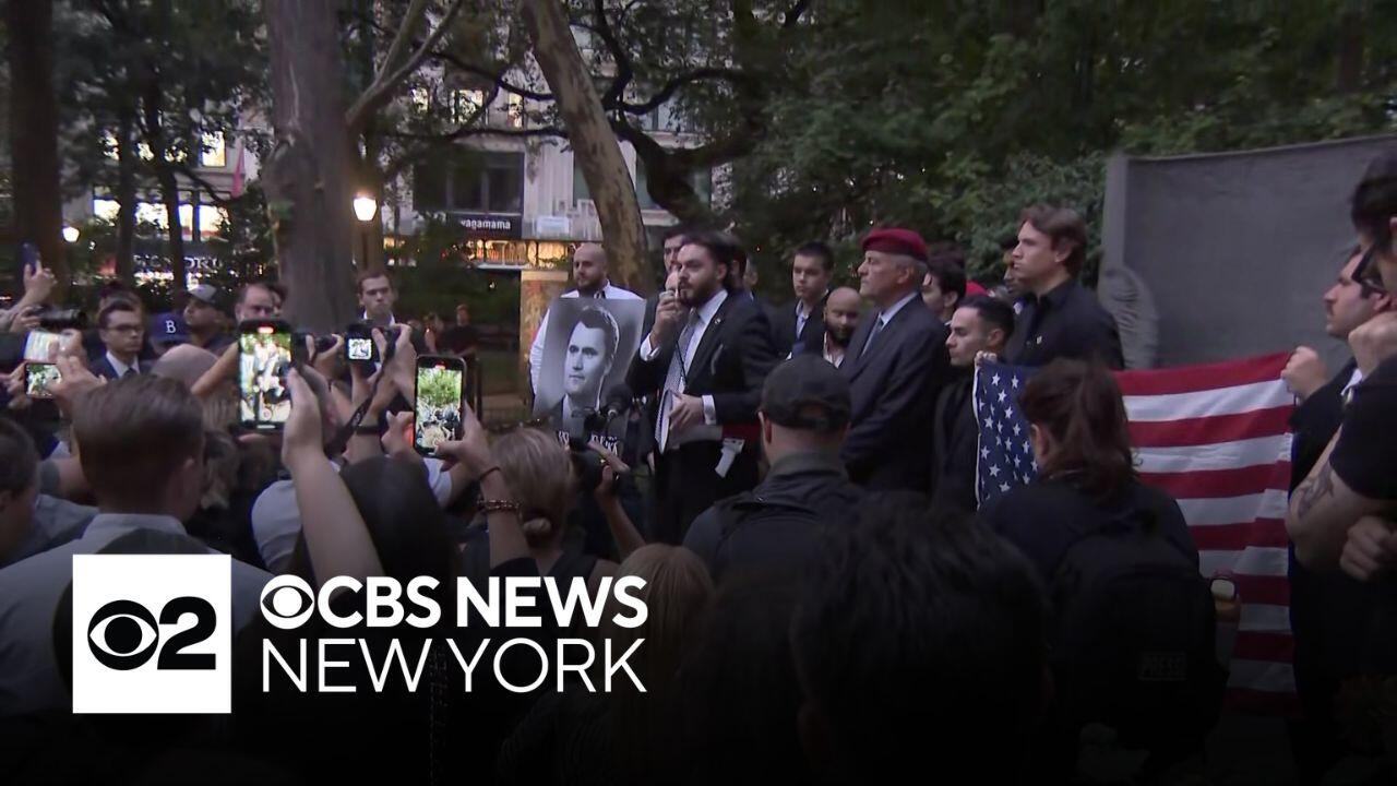 Over 100 people gathered at Madison Square Park on Friday to mourn conservative activist Charlie Kirk. CBS News New York's Tony Aiello reports.