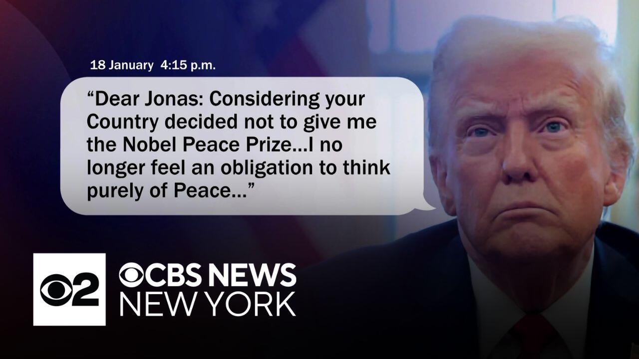 A new threat from President Trump on the control of Greenland has European leaders fighting back, and he brought up his failure to win the Nobel Peace Prize as potential justification for activating America's military might, as well. CBS News New York's Dick Brennan reports.