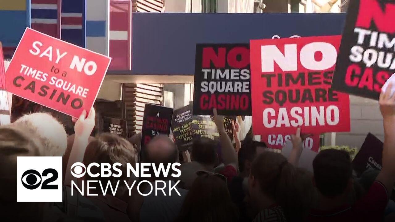 A rally was held Wednesday morning and some theater marquees offered their two cents on the issue. CBS News New York's Allen Devlin reports.