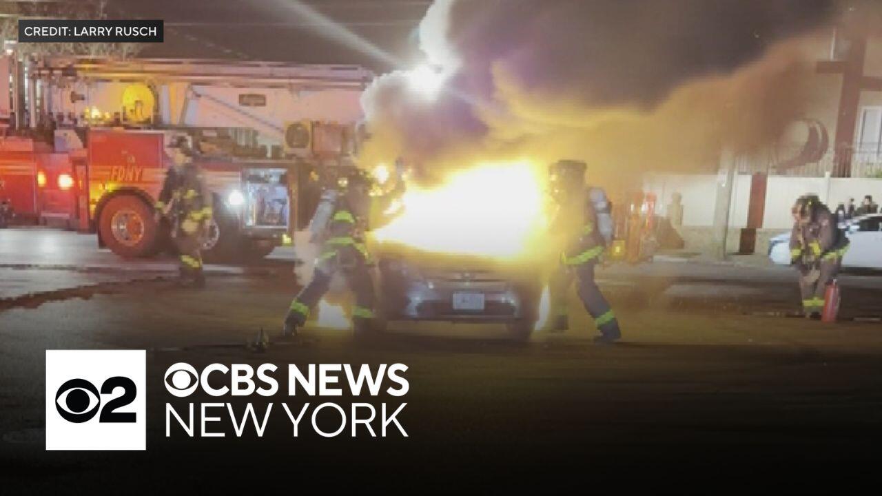 A neighborhood in Queens was besieged Sunday morning by a car meetup that brought screeching tires, flames, fireworks and violence with it. CBS News New York's Allen Devlin reports.