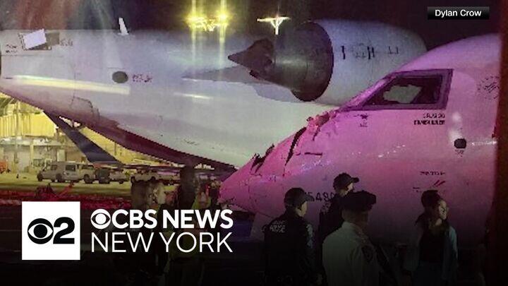 Animation shows the low-speed crash as one plane arrived from Charlotte, North Carolina, and another prepared for departure to Roanoke, Virginia, on Wednesday night. CBS News New York's Tim McNicholas reports.