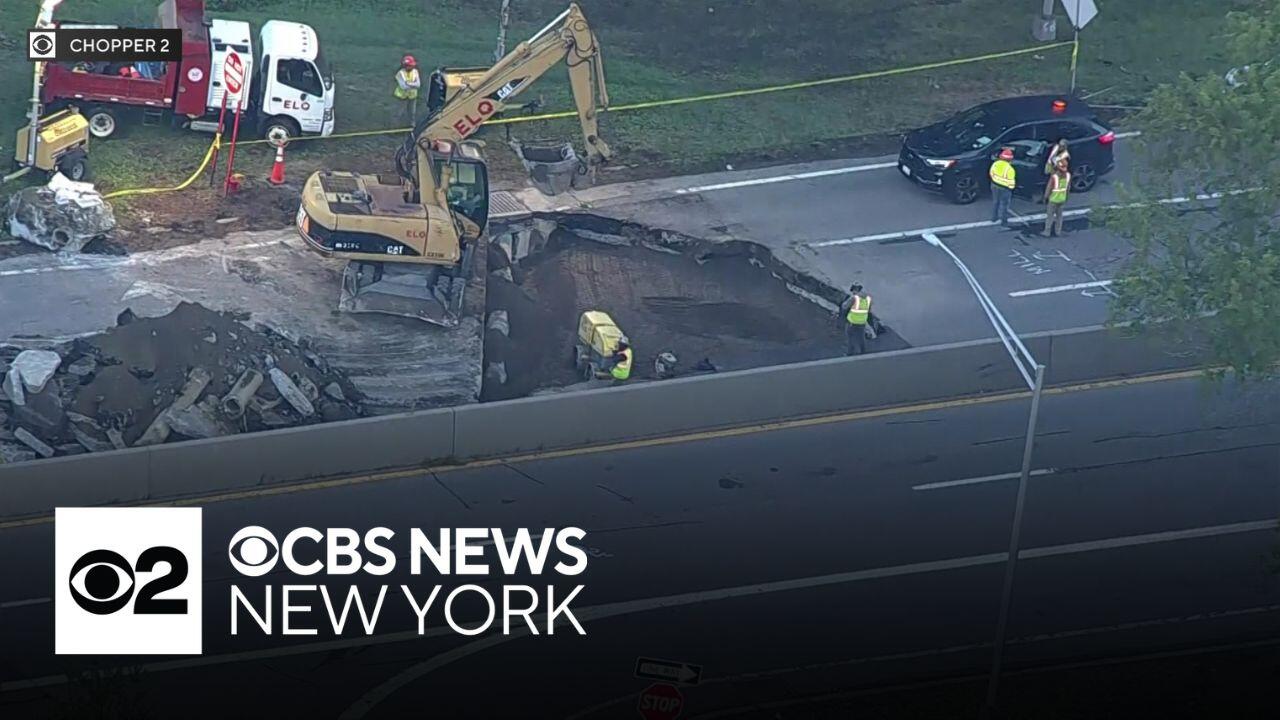 A section of the Saw Mill River Parkway is closed Monday in Westchester County. Drivers are being asked to avoid the area, and it's unclear exactly when crews will finish fixing the problem. CBS News New York's Tony Aiello reports.