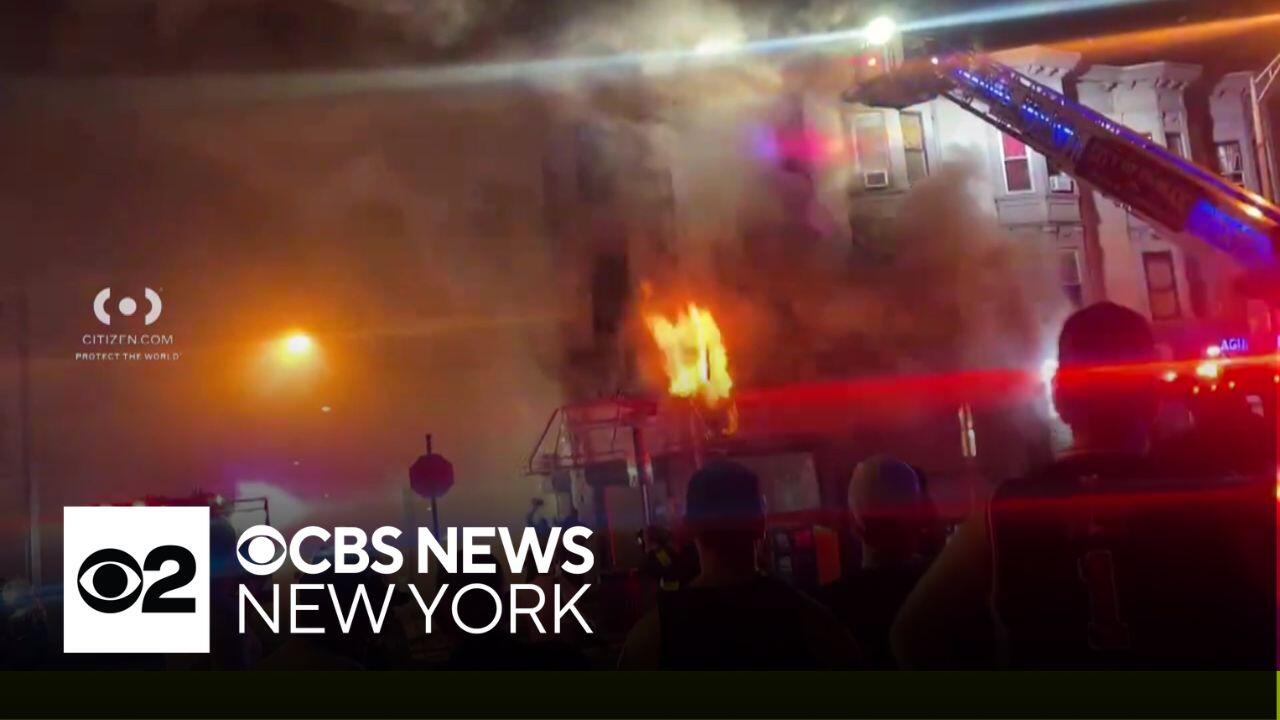 Multiple firefighters were hurt and two were rushed to the hospital after battling a large building fire in Passaic, N.J. CBS News New York's John Dias reports.