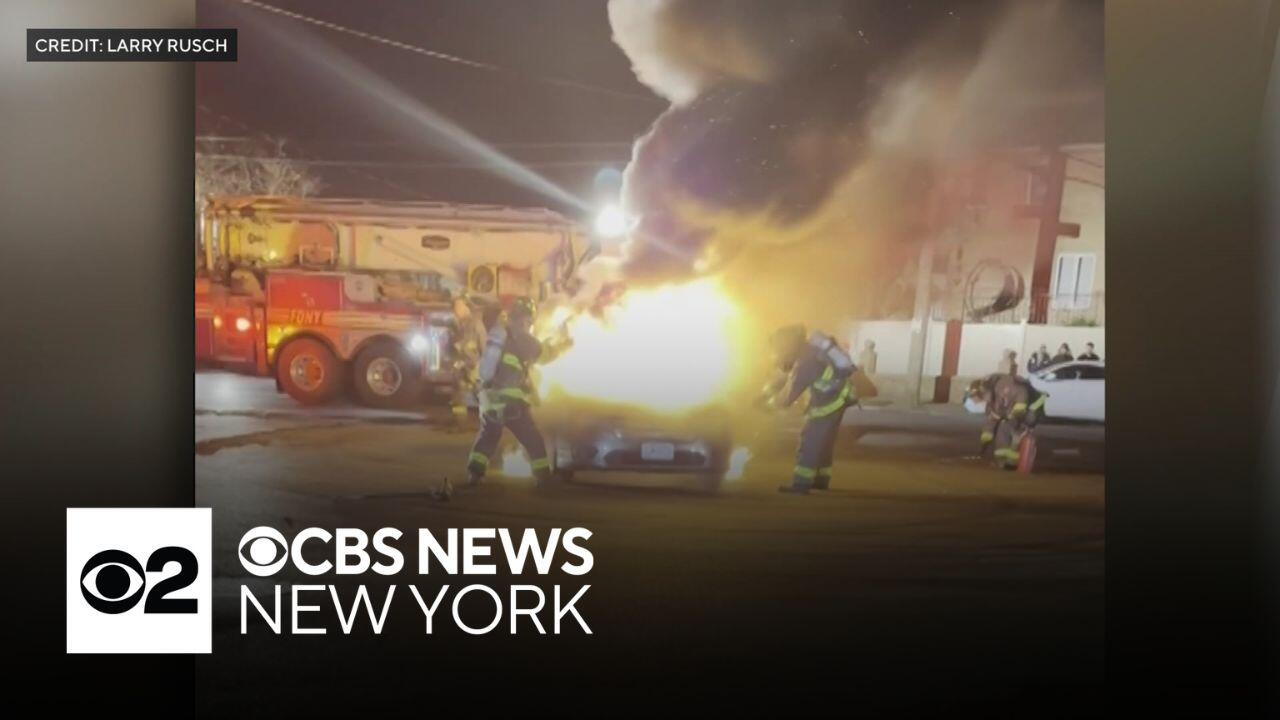 Video captured the chaos of the incident, with cars doing donuts in the street and fireworks set off. A security vehicle that was parked in an intersection in an effort to put an end to the swarm of cars descending on the area was set on fire. CBS News New York's Elijah Westbrook reports.