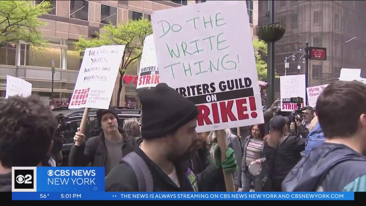 TV writers are on strike for the first time in 15 years. They say they're calling for fairer contracts after not being able to reach an agreement on negotiations Monday night. CBS2's Lisa Rozner spoke to writers on picket lines in New York.