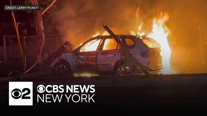 Larry Pickett Jr. is seen helping lift the driver to safety, moments before the car goes up in flames on Sunday morning on Route 9W. CBS News New York's Lisa Rozner reports.