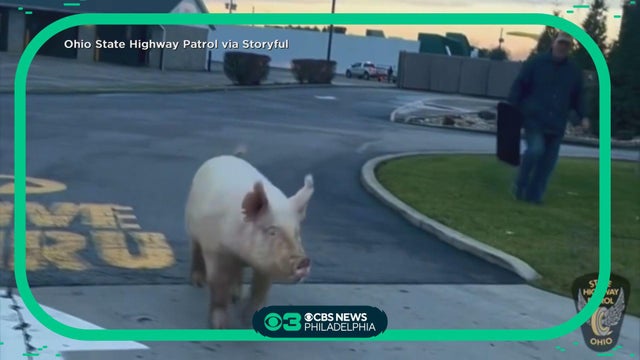Ohio State Troopers wrangled a wayward pig at a McDonald's drive-thru over the weekend. Video captured the "insu-boar-dinate" fugitive being taken into custody.