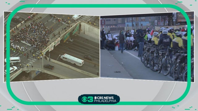 Protesters are causing traffic headaches in the city. Chopper 3 is live over the Schuylkill Expressway near the Spring Garden Street Bridge. READ MORE: https://cbsloc.al/48l07gj