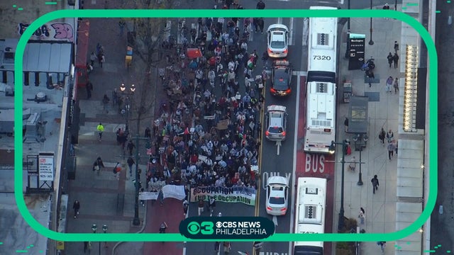 Protestors marched throughout Philadelphia Friday afternoon and evening and blocked traffic along the way. Chopper 3 was over what appeared to be a pro-Palestinian rally. READ MORE: https://cbsloc.al/47ER49k