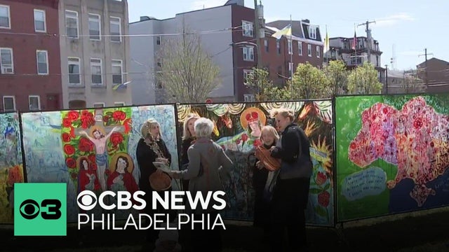 Members of Philadelphia's Ukrainian community on Sunday unveiled a large outdoor painting meant to capture the pain of the war and the people's resilience.
