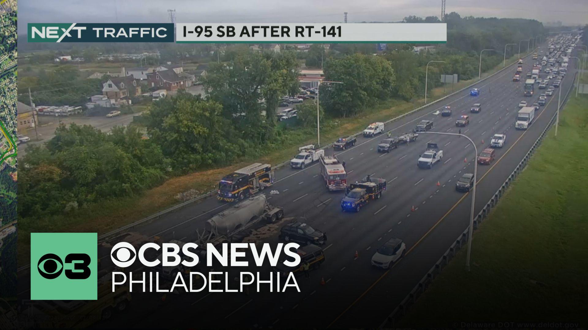 WILMINGTON, Del. (CBS) -- A tractor-trailer crash on I-95 southbound is blocking four lanes on that side of the highway on Friday morning, according to Delaware State Police.
