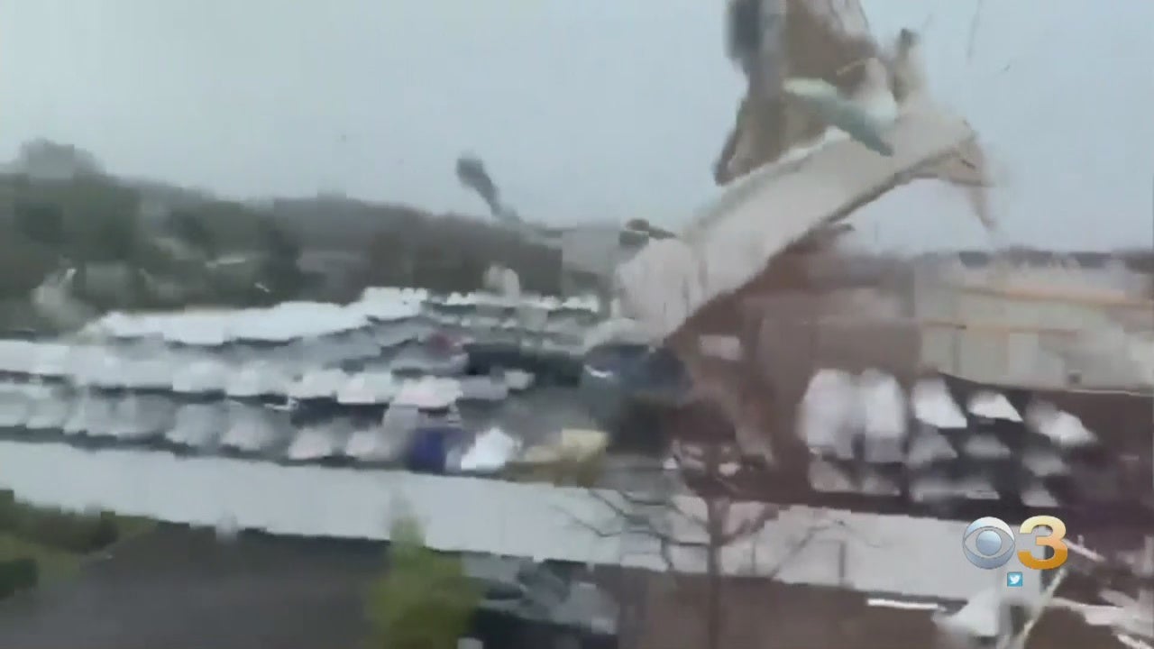 SOMERS POINT, N.J. (CBS) - Parts of the Jersey Shore are cleaning up after powerful storms swept through the area on Monday. Cellphone video captured the moment high winds ripped the roof off an All Action Water Sports building in Somers Point.