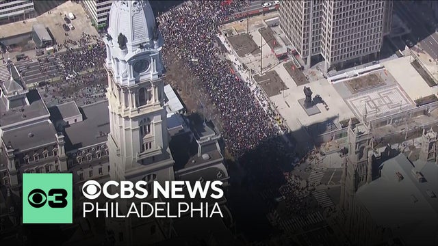 A "No Kings" protest got underway in Philadelphia on Saturday, March 28, one of thousands around the country. Jan Carabeo and Eva Andersen report as Chopper 3 is live over the demonstration.
