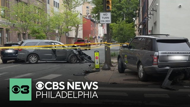 Video obtained by CBS News Philadelphia shows the moment of a crash that damaged four vehicles and led to DUI charges at 16th and Lombard streets in Center City.