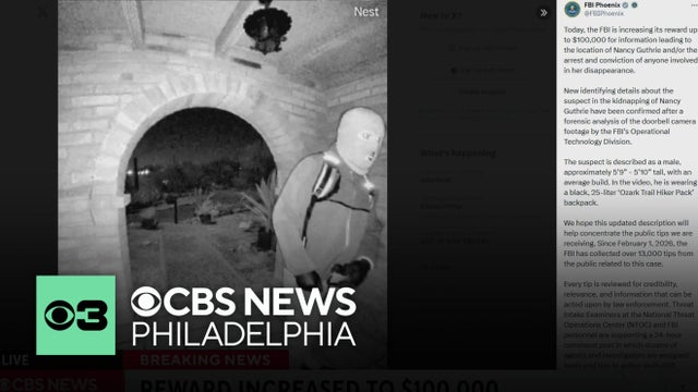 The FBI has increased the reward to $100,000 for information leading to the location of Nancy Guthrie or the arrest and conviction of anyone involved in her disappearance.