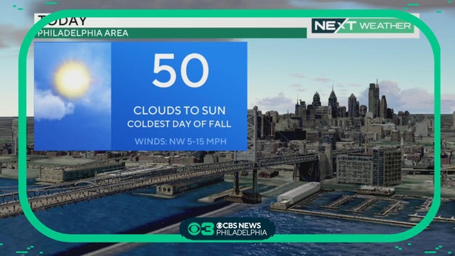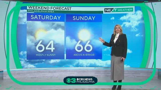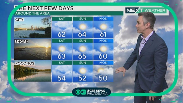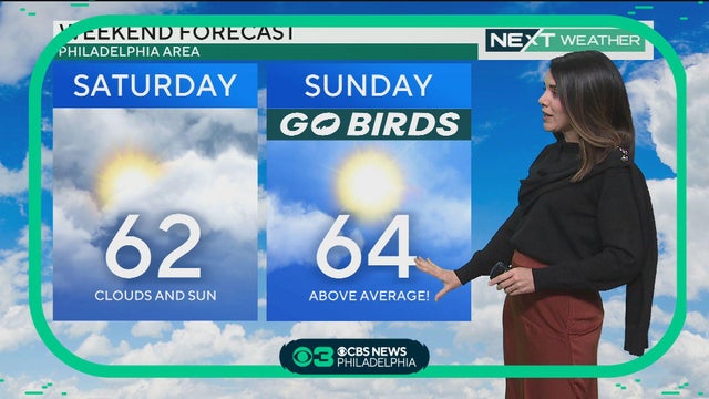 Temperatures will rebound slightly Friday to a high of 59 in Philadelphia and this weekend we'll see highs in the 60s, Kate Bilo reports.