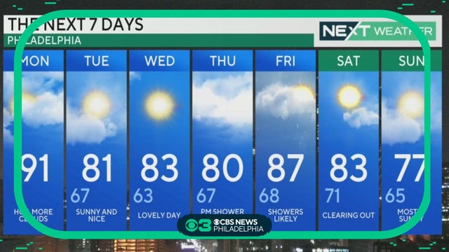 Prepare for a sunny and warm Sunday in Philadelphia. Highs will be near 90.