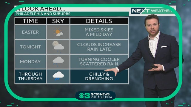 We might see some showers Saturday afternoon and evening before a potentially foggy Easter morning. Then things clear up for a sunny and mild Sunday in the Philadelphia area, Andrew Kozak reports.