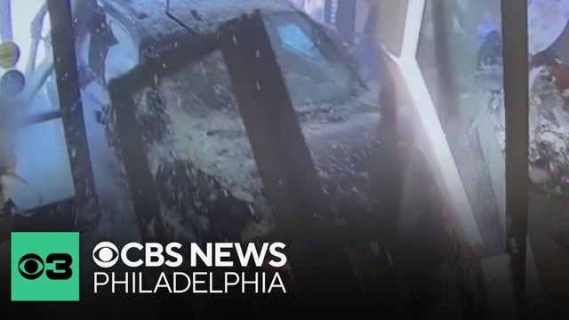 A driver intentionally crashed a car into a Philadelphia police station on Castor Avenue, police say.