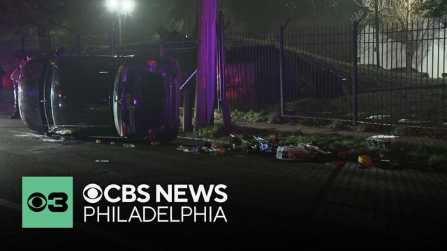 A driver lost control and their car wound up on its side on Stenton Avenue near East Logan Street in Philadelphia around 2:30 a.m. Friday.