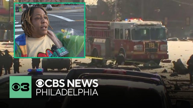 "I just wanted them and their family members to know they're not alone," T'Chala Brooker told CBS News Philadelphia's Nikki DeMentri. The Philadelphia resident came to the scene of a medical jet that crashed near the Roosevelt Mall -- trying to establish a memorial.