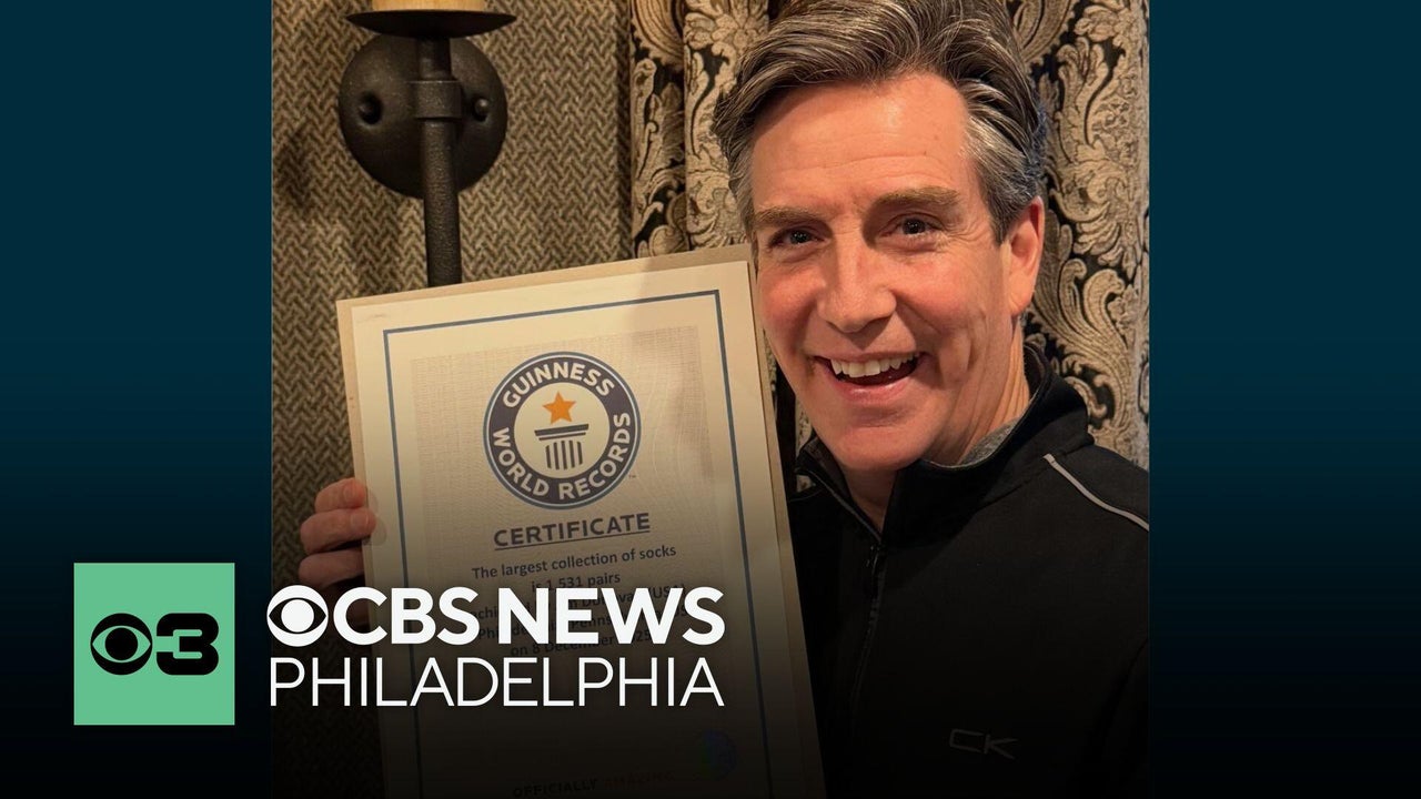 CBS News Philadelphia's Jim Donovan receives certificate for sock collection world record