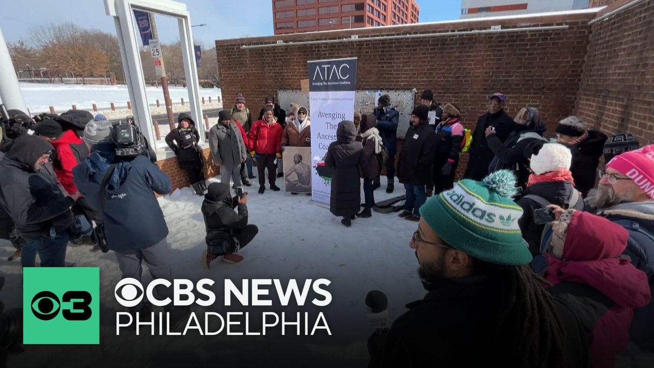 Community members gather to protest removal of slavery exhibit in Philadelphia