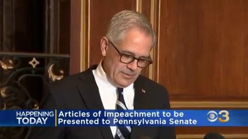 Pennsylvania House managers will present the articles of impeachment to members of the state Senate Wednesday.