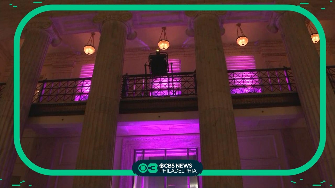 CBS News Philadelphia is turning buildings and landmarks around the region pink in recognition of National Breast Cancer Awareness Month. The Ritz-Carlton Hotel is showing off pink lights inside its lobby as part of October's Lights for the Fight campaign. READ MORE: https://cbsloc.al/3tsF3Fe