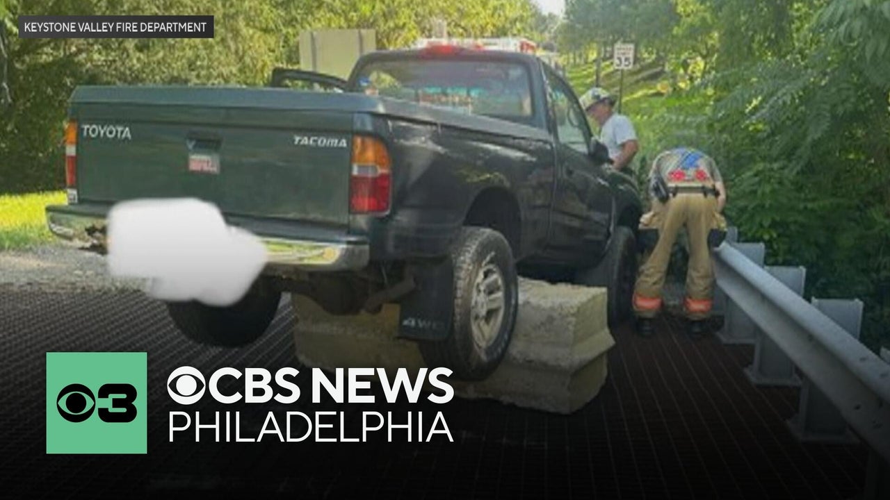Pickup truck stuck after going past road closure sign in Chester County