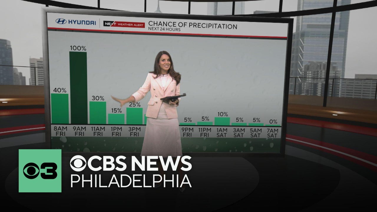 Our NEXT Weather team expects heavy rain for the Philadelphia area on Friday morning and then precipitation gets less likely for the rest of the day. Get the latest weather info from Meteorologist Kate Bilo.