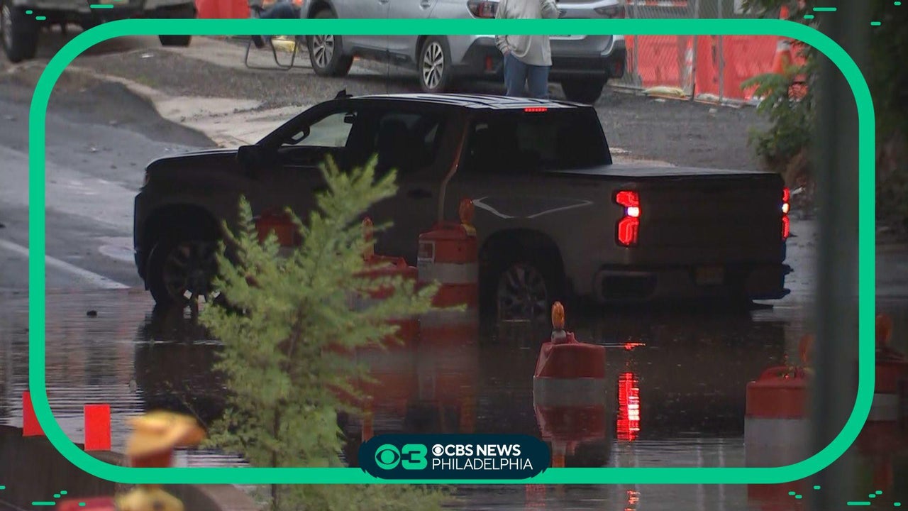 Road floods in Philadelphia's University City after heavy rain