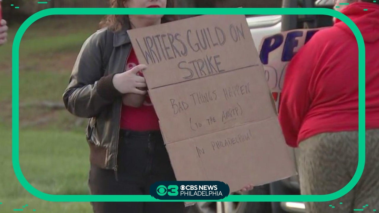 Writers Strike: Members of writers guild picketing in Aston, Pa.