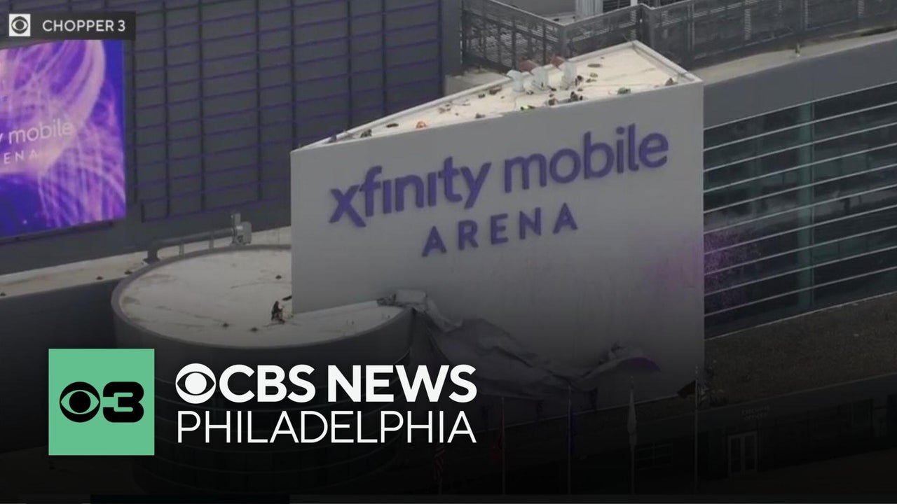 Xfinity Mobile Arena sign unveiled in South Philly with help from mascots Gritty, Franklin