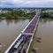Aerial view of a Honduran migrant caravan stopped on the Guatemala-Mexico international bridge in Ciudad Hidalgo, Chiapas state, Mexico, on October 19, 2018.