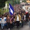 Honduran migrants walk behind the Honduran flag in a caravan towards the United States in Chiquimula, Guatemala, on October 17, 2018.