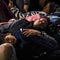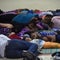 Honduran migrants sleep on the ground in Chiquimula, Guatemala, on October 17, 2018.
