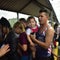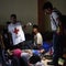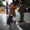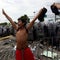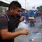 A Honduran migrant is cooled down after struggling to cross one of the gates of the Guatemala-Mexico international border bridge in Ciudad Hidalgo, Mexico, on October 19, 2018.