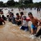 Migrants make a human chain to pull people from the river separating Guatemala from Ciudad Hidalgo, Mexico, October 29, 2018.