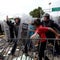 Honduran migrants heading in a caravan to the U.S. remove a barrier at the Guatemala-Mexico international border bridge in Ciudad Hidalgo, Mexico, on October 19, 2018.