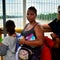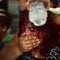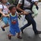 A Honduran migrant woman helps a boy at the main square of Ciudad Hidalgo, in Chiapas state, Mexico, on October 19, 2018.