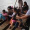 Honduran migrants heading in a caravan to the U.S. cross the Suchiate River in a makeshift raft in Ciudad Tecun Uman, Guatemala, on October 19, 2018.
