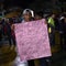 A Honduran migrant, heading in a caravan to the United States, holds a sign reading, "Donald Trump, we are not criminals, we are workers who want to work," in Tecun Uman, Guatemala, on October 19, 2018.