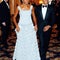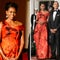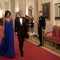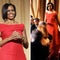 For a state dinner in New Delhi, India, on Nov. 8, 2010, with President Barack Obama, Indian President Pratibha Patil, and her husband Devisingh Patil, Mrs. Obama showed off her statuesque physique in a floor-length metallic skirt and a satin, bronze top by Rachel Roy.