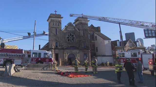 Crews responded to Chesbro and Progress streets on Pittsburgh's North Shore Saturday afternoon after a fire broke out at a semi-abandoned church.