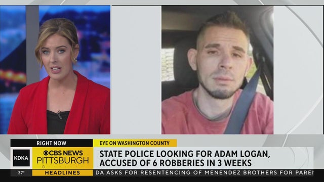 Pennsylvania State Police are searching for 38-year-old Adam Logan who is accused of a string of armed robberies across Washington County.