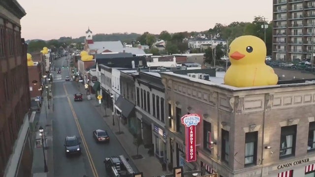 More yellow rubber ducks have appeared around Canonsburg, and while they're quite a bit bigger than the last ones, their origin is no longer a secret. KDKA-TV's Barry Pintar has the latest developments.