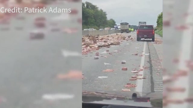 A truckload of hot dogs has spilled across a Pennsylvania highway after a crash on Friday in York County.
